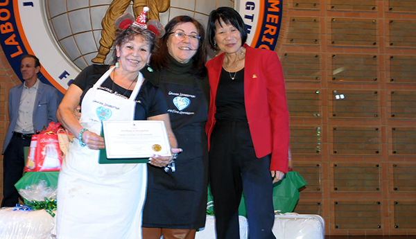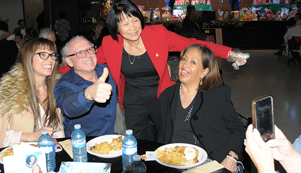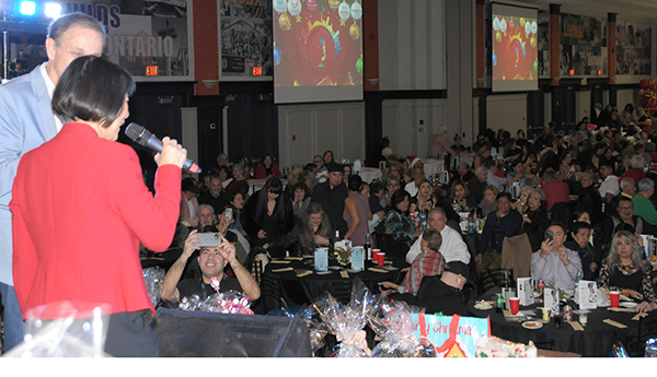 El evento estuvo engalanado con la presencia de la alcaldesa de Toronto, Olivia Chow, quien al hacer uso de la palabra expresó sus mejores deseos de una feliz Navidad y un próspero año 2026 para todos los asistentes. En un gesto que fue ampliamente aplaudido, la alcaldesa se ofreció como voluntaria para ayudar a servir la comida, demostrando cercanía y gran energía al recorrer mesa por mesa entregando los platos a los seniors.