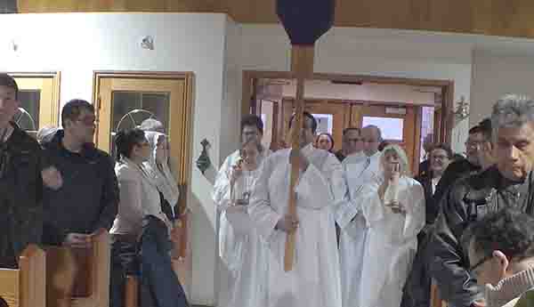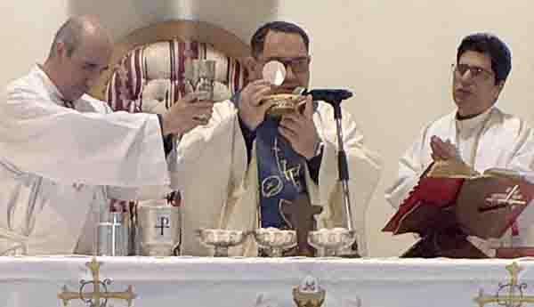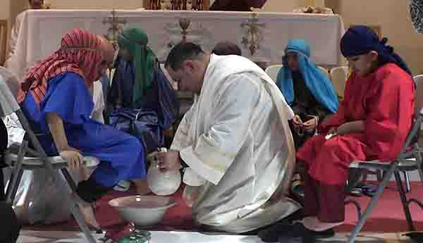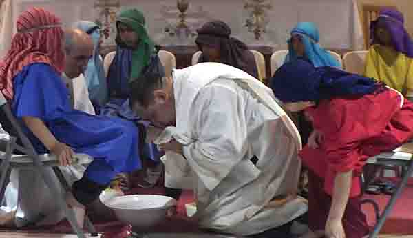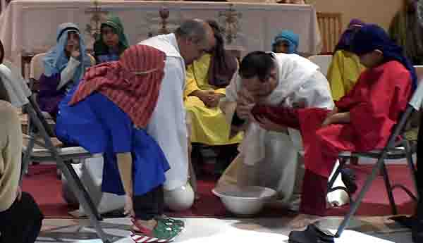 Por Víctor R. AGUILAR.- La misa de Jueves Santo celebrada en la parroquia Nuestra Señora de Guadalupe en Toronto, fue concelebrada por el Padre Edgar Romero, el Padre Javier Valdés y el diácono Carlos Retamales. En esta significativa celebración, los 12 apóstoles fueron representados por los niños de la Infancia Misionera de la parroquia, dando un profundo sentido de sencillez y entrega al gesto del lavatorio de los pies.