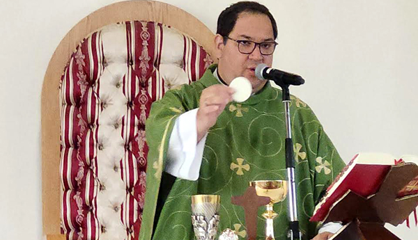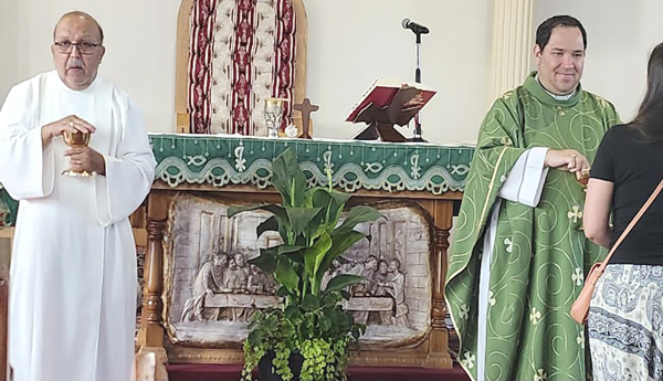 El Padre Edgar Romero (derecha) y el Ministro de la Eucaristía Francisco Naar.